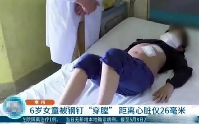 直奔医院后,医生说,孩子身体里有一枚7cm的钢钉,离心脏只有26毫米,险些要了孩子的命。