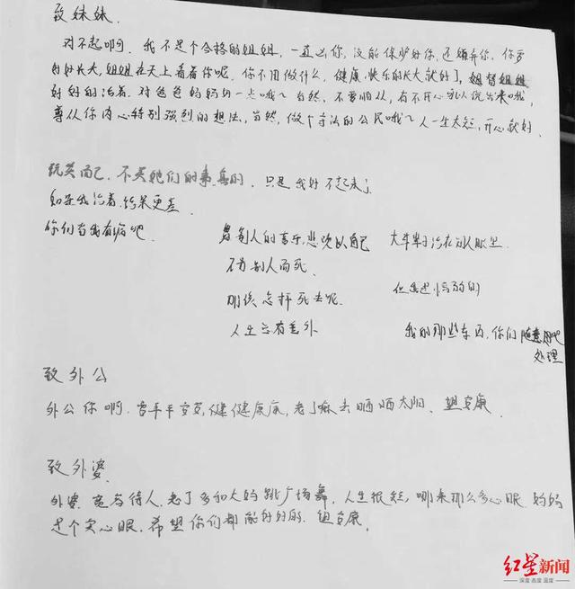 宏宏写给妹妹、外公、外婆的遗书